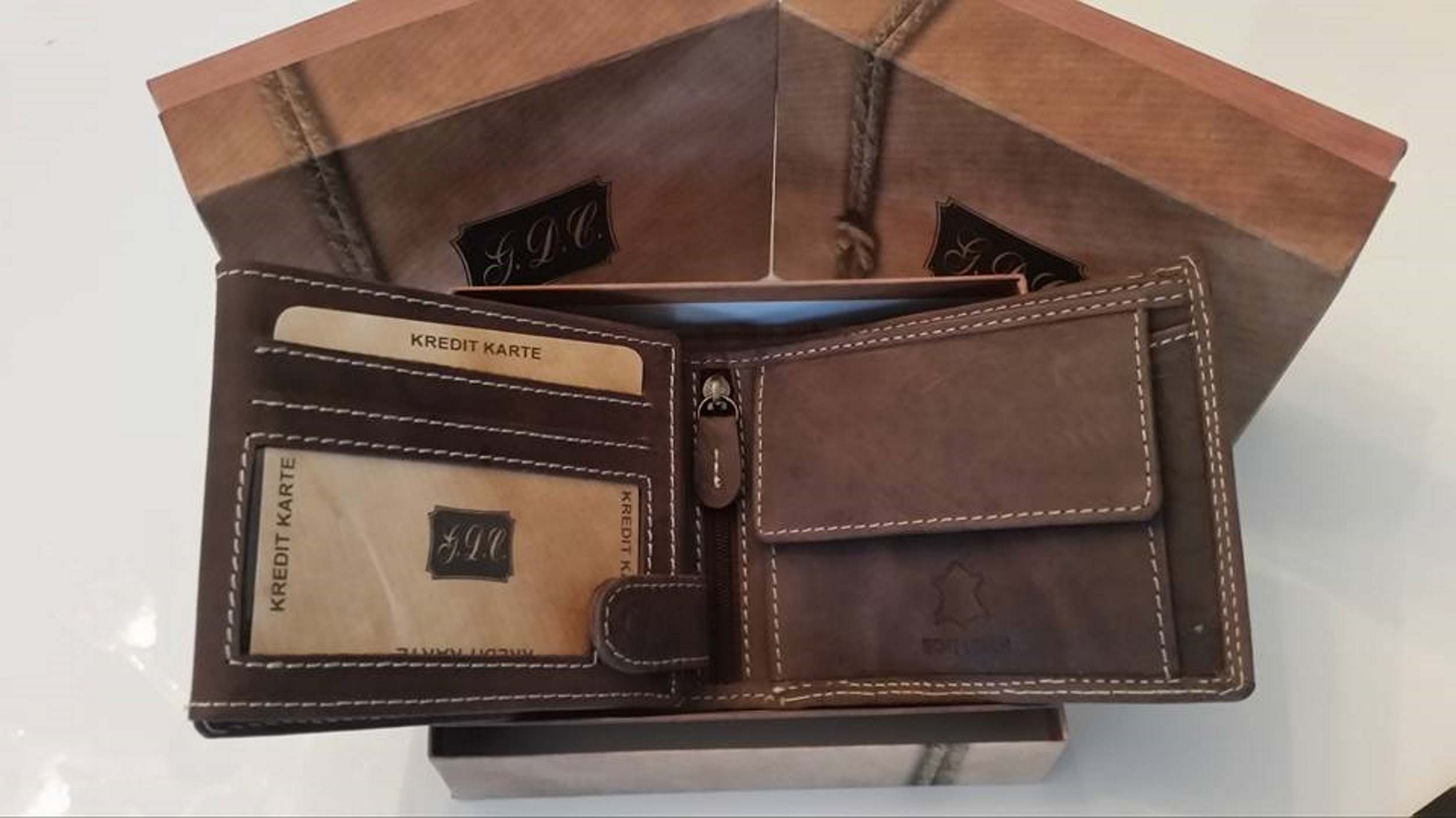 - Geldbörsen in Büffelleder mit verschiedenen Aufdruckmotiven